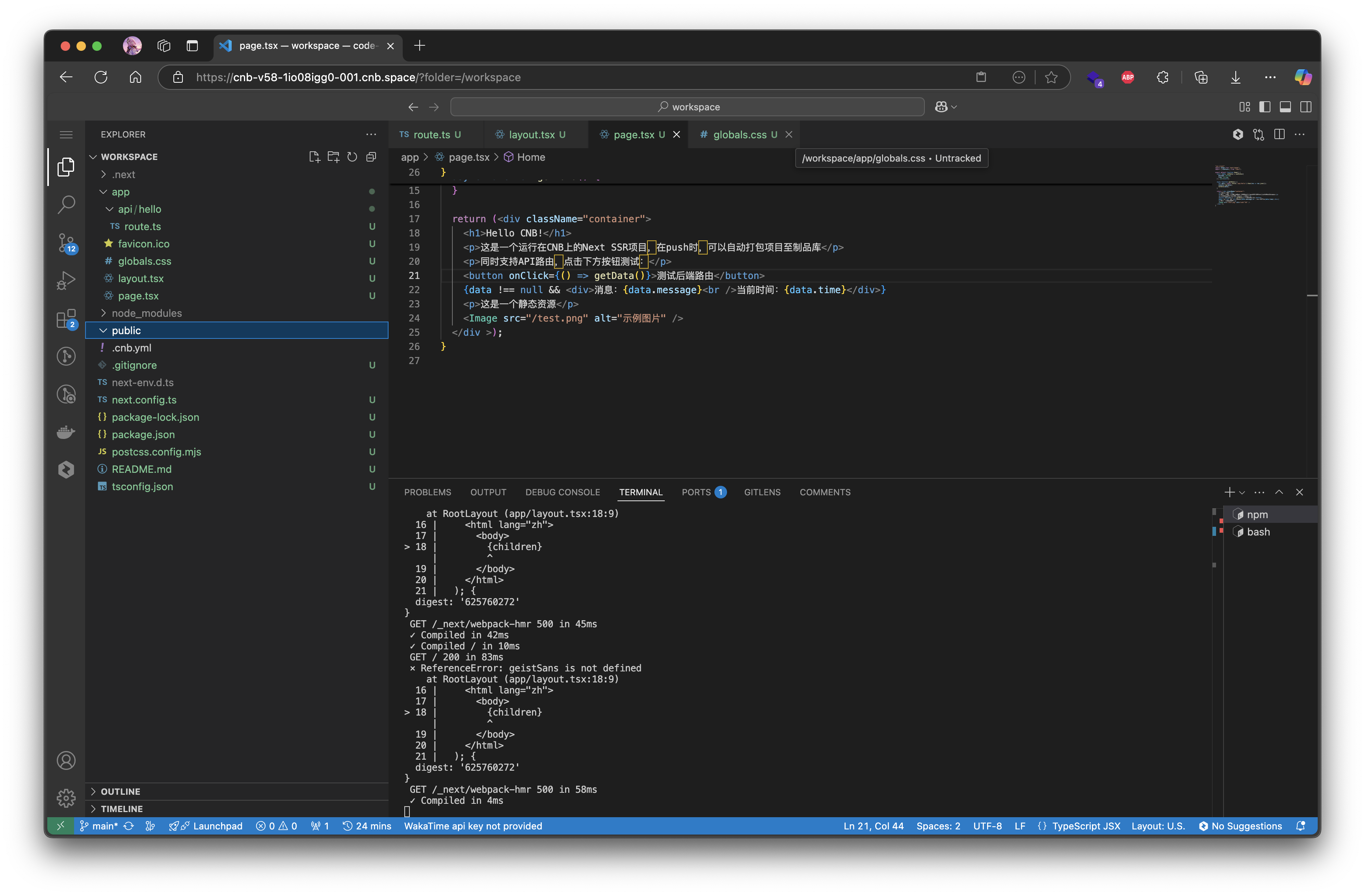 这是一个运行在CNB上的Next项目,在push时,可以自动打包项目至制品库,并自动部署到Edgeone